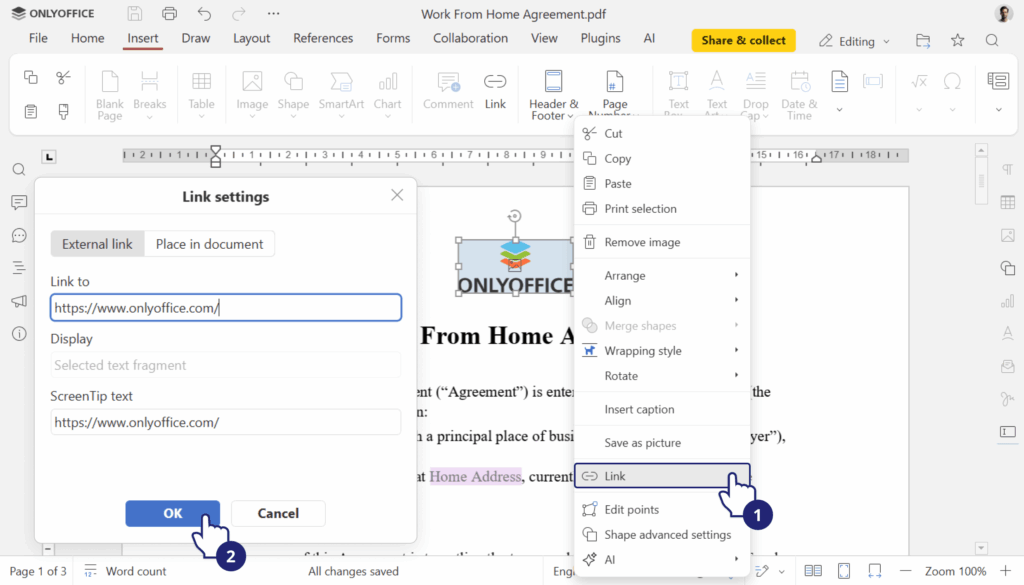 Presentations now support GIF playback in slideshow mode, a simple but useful enhancement for more visual content, demos, and business presentations. Additionally, the suite now allows adding hyperlinks to images, shapes, and groups, saving files in Markdown format, and opening TSV files for viewing. These small advancements clearly indicate that ONLYOFFICE is aiming to better cover the actual workflows of teams that frequently switch between documents, data, presentations, and web content.