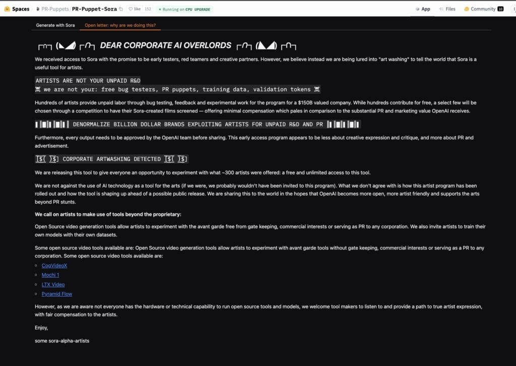 A protest group calling itself “Sora PR Puppets” leaked access to OpenAI’s video model Sora on Hugging Face, which had not yet been officially released. This leak has revealed significant advancements in the capabilities of the model but has also sparked criticism of the company’s practices in its early access program.